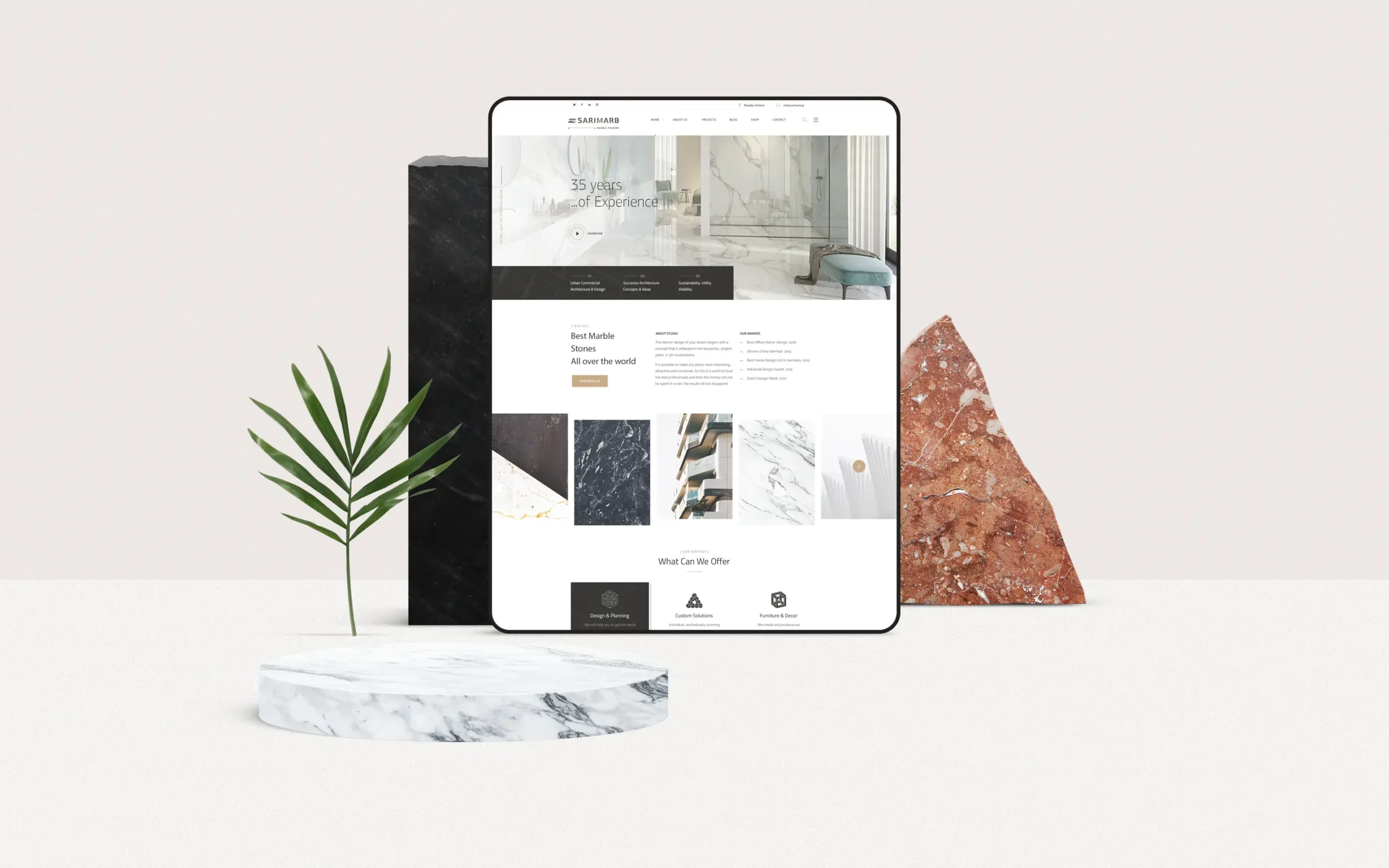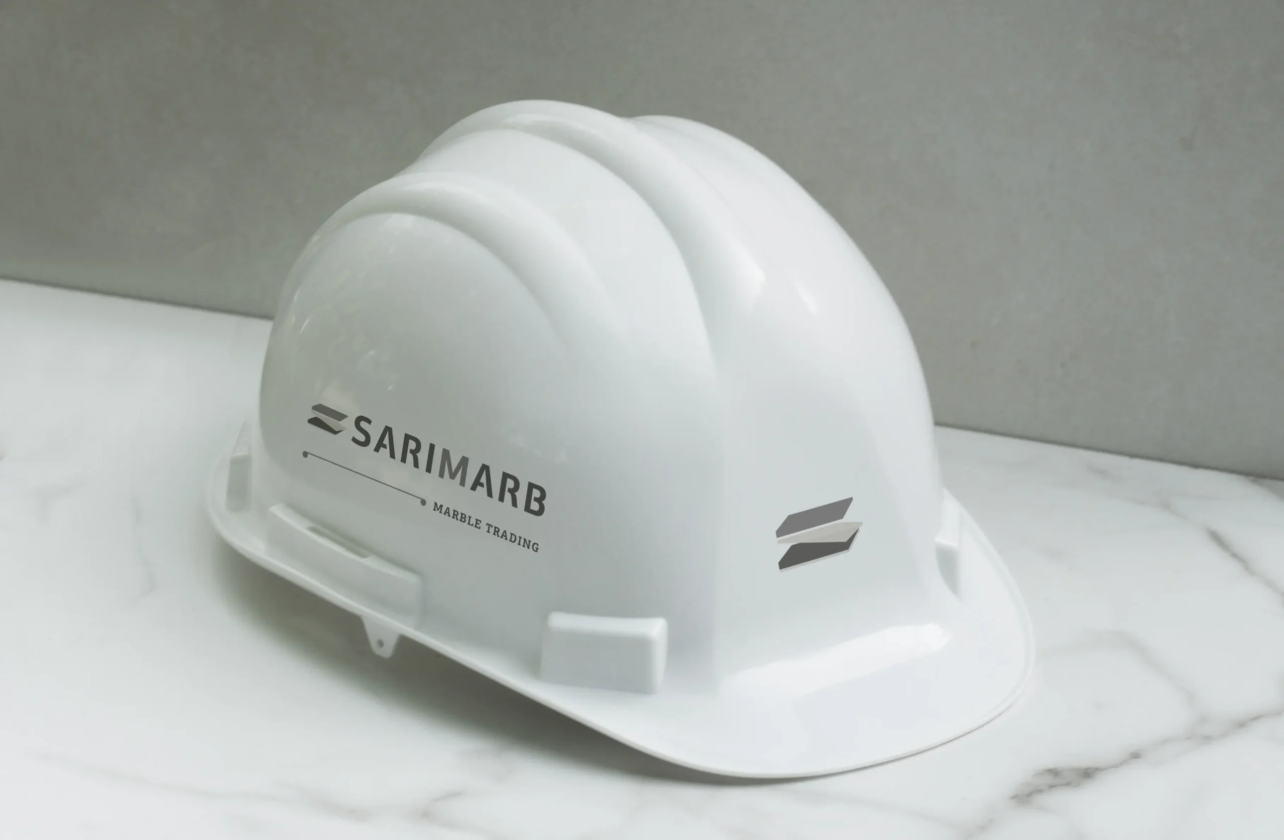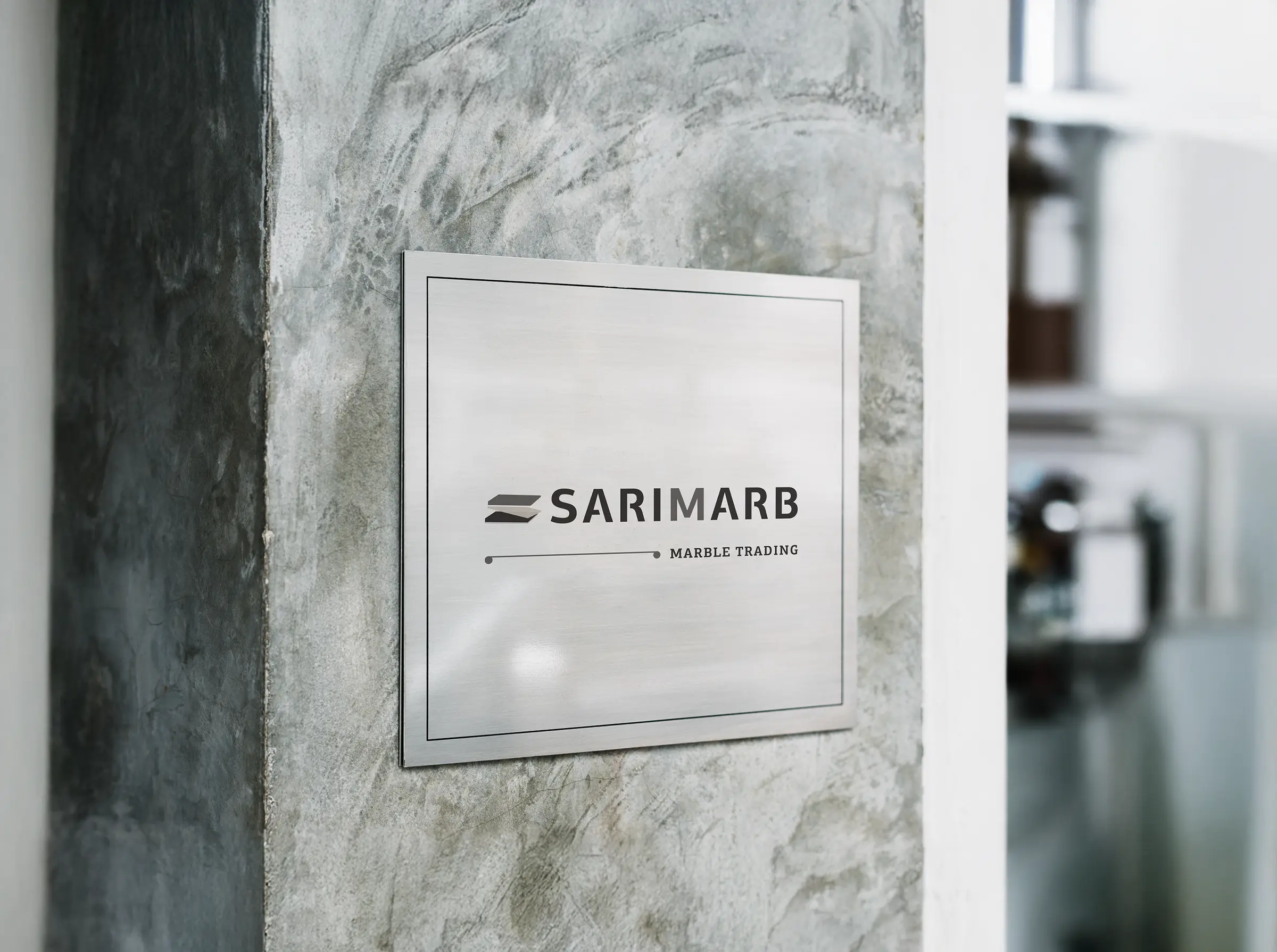 The visual identity is built around a central emblem that combines classical symbolism with contemporary structure. Inspired by the architectural form of a column capital, the mark incorporates three geometric stone slabs arranged to subtly form the letter “S” a reference to the family name behind SARIMARB.